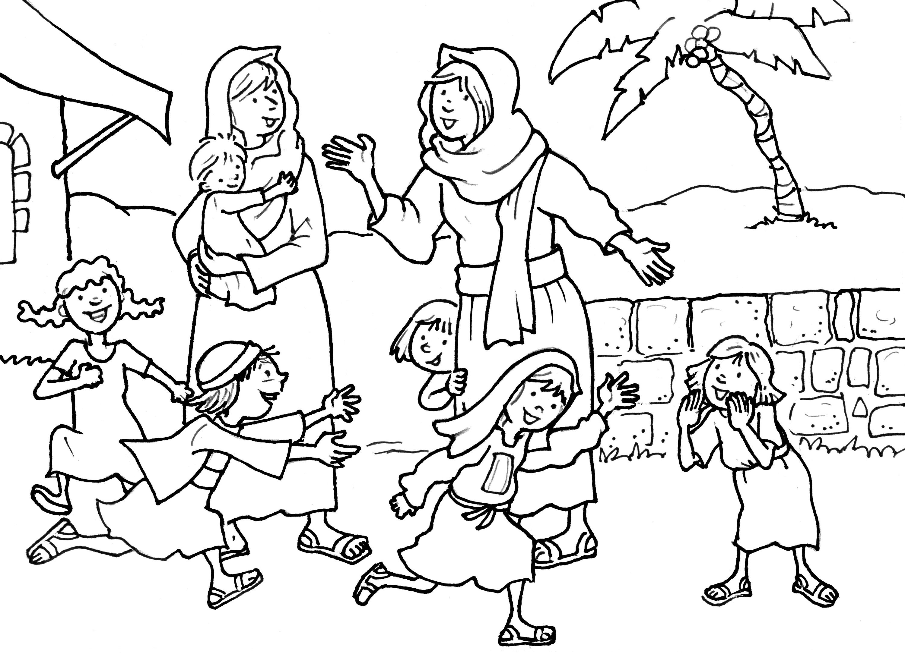 Los discípulos se dieron cuenta de que estaban equivocados. Llamaron a las mamás y les pidieron perdón. Les dijeron que Jesús las estaba esperando a ellas y a todos los niños.