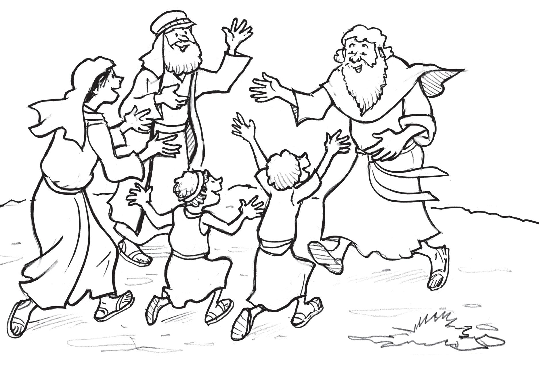 Cuando llegaron al campamento todo fue una gran alegría: se abrazaron y rieron y se besaron. Por fin estaba con su querida familia.