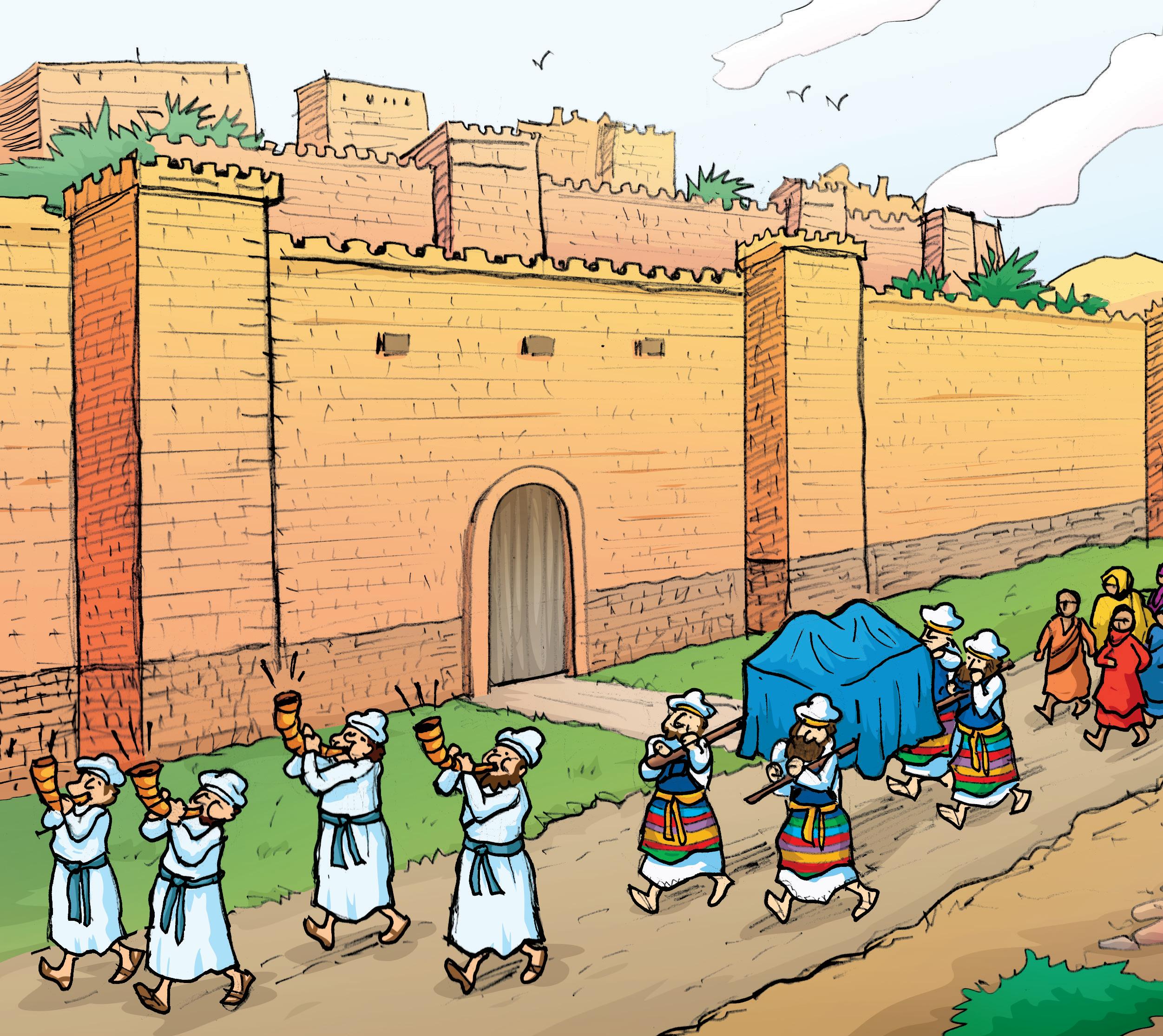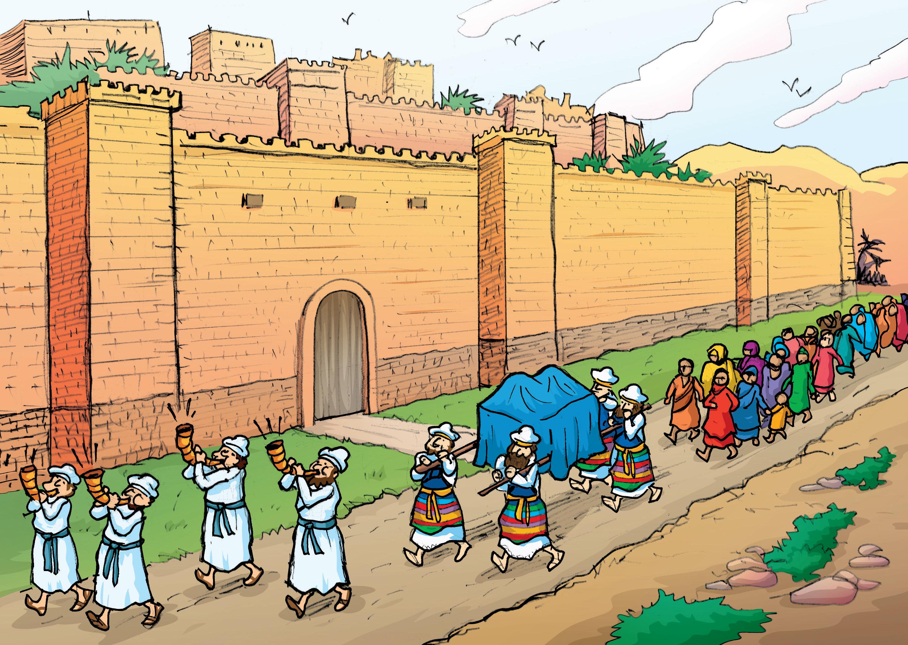Primero irían los soldados. Luego siete sacerdotes con siete shofares o trompetas hechas de cuernos. Ese era el único sonido que se debía oír y que anunciaba el paso del arca. Luego los cuatro sacerdotes que llevaban el arca de la alianza y detrás todo el pueblo.