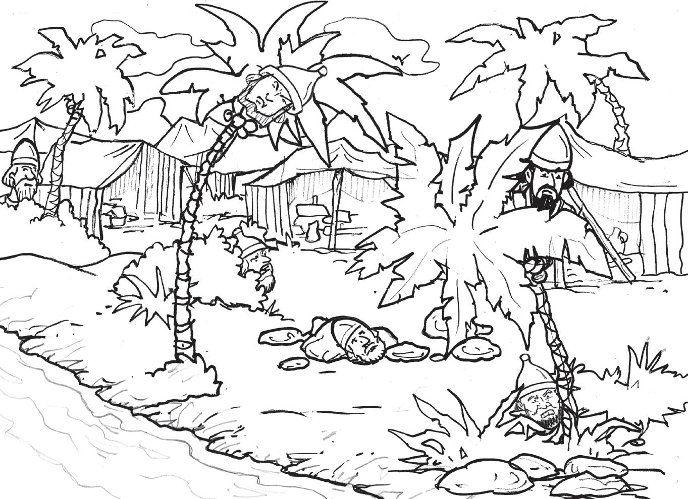 • Los soldados cananeos tenían miedo de los Israelitas y se escondieron. Encuentra 10 caras de los que se escondieron.