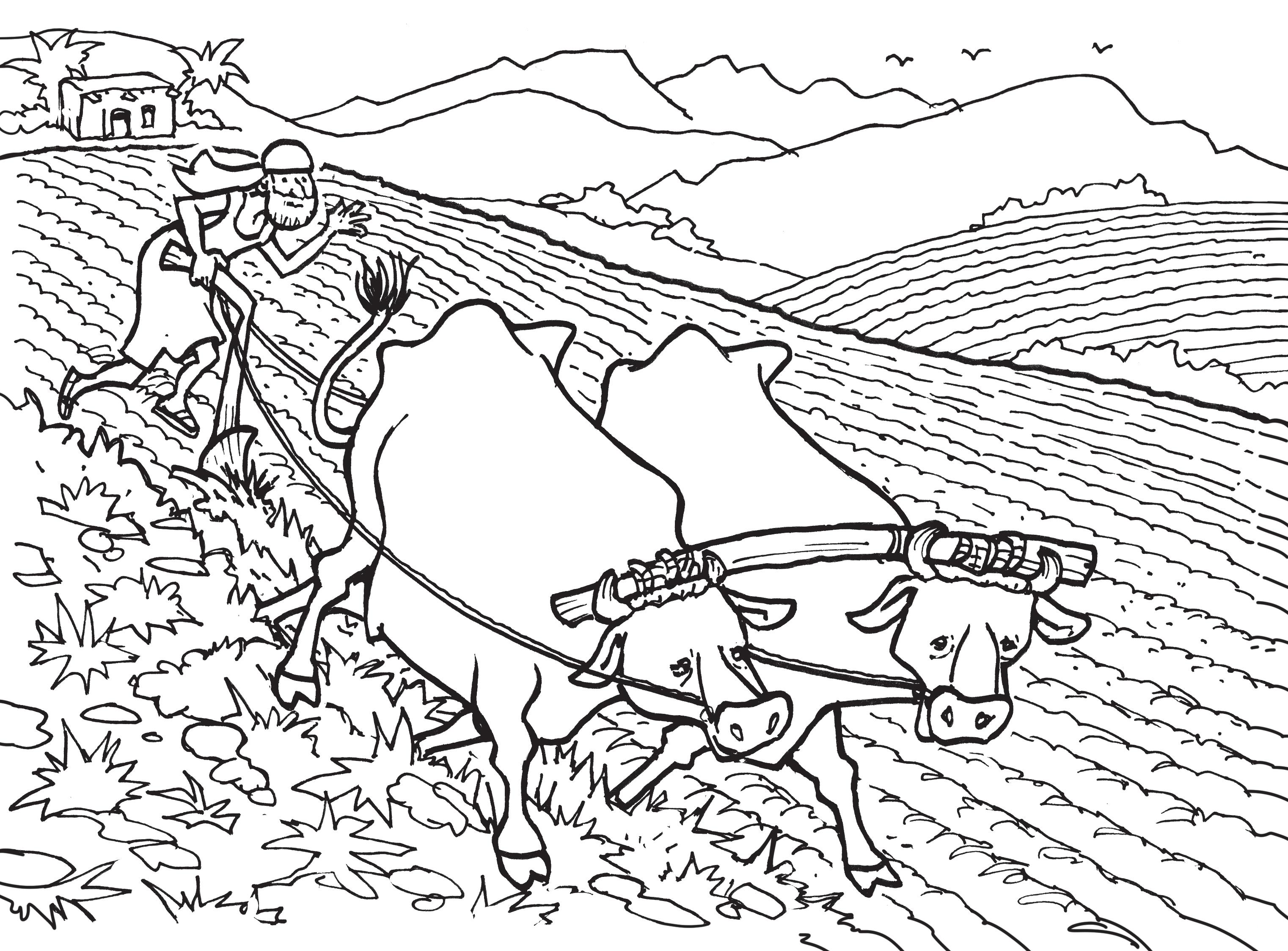 Era un trabajo duro porque en aquel tiempo no había máquinas, ni tractores ni cosechadoras ni máquinas de arar. La tierra había que removerla con azadas, y si el agricultor era rico, podía tener una yunta de bueyes que tiraban de un arado. Las semillas se sembraban a mano y el fruto también se recogía a mano. En Israel había muchos campos de trigo o de cebada porque con esos cereales hacían el pan, que era el principal alimento de las familias.