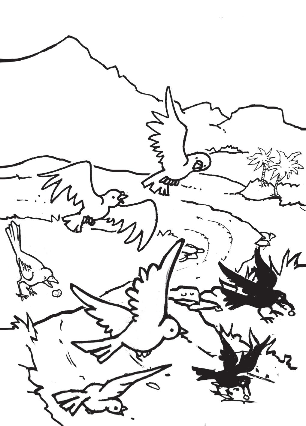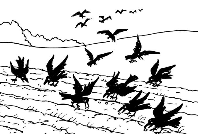 El sembrador de la historia que Jesús contó salió al campo con un saco de semillas. En aquella época el cereal se plantaba a voleo, es decir, el sembrador iba caminando por el campo e iba tirando las semillas al aire para esparcirlas mejor. Como la tierra estaba bien removida, las semillas que caían se quedaban dentro de la tierra donde crecerían y se formaría la planta. Lee la historia en Marcos 4:3-8 y completa el texto.