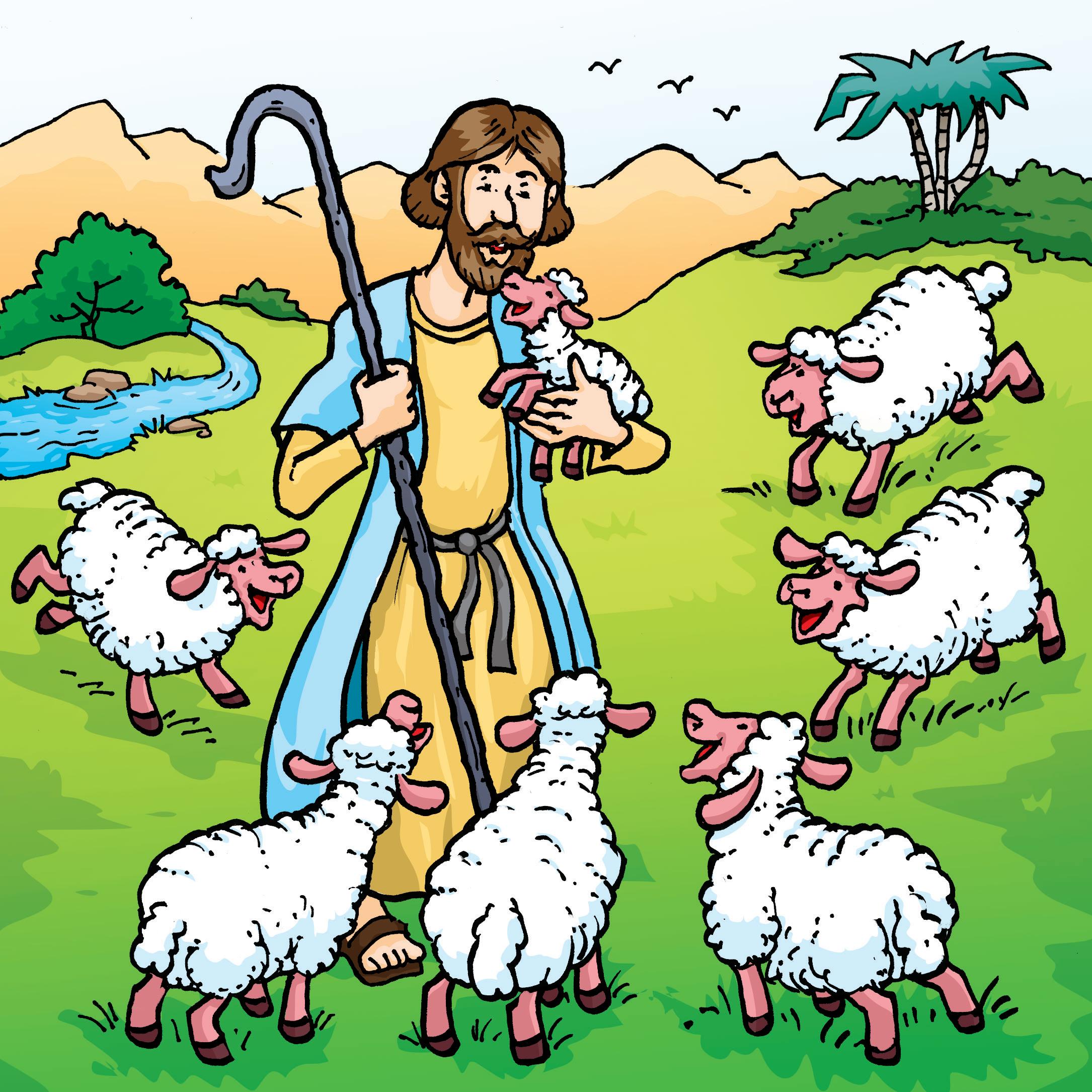 Cuidar un rebaño de ovejas no es fácil. Hay que asegurarse de que todas coman buenas hierbas y beban suficiente agua. Hay que vigilar que ninguna esté enferma y que todas regresen al redil por la noche a salvo. Mientras están en el campo, el pastor debe vigilar que ninguna oveja se aleje y se pierda o que venga algún animal salvaje que les haga daño.