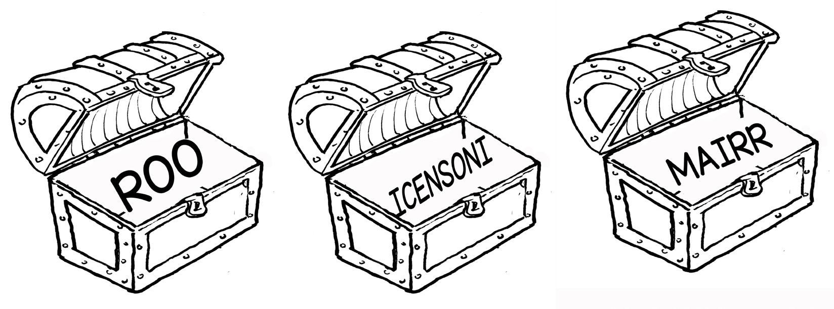 • Ordena las palabras de cada cofre y sabrás qué regalo contenían.