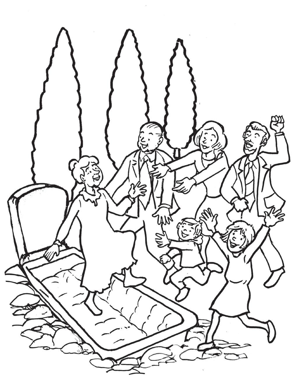 Un día, cuando Pablo predicaba sobre cómo Jesús sanaba a los enfermos, vio a un hombre cojo que escuchaba muy atentamente. El hombre había nacido cojo y nunca había caminado. Pablo sabía que el hombre creía las cosas maravillosas que escuchaba de Jesús. Entonces Pablo se dirigió a donde estaba el hombre y le habló en voz alta para que todos pudieran escucharlo. ¿Qué le dijo? (Lee Hechos 14:10).