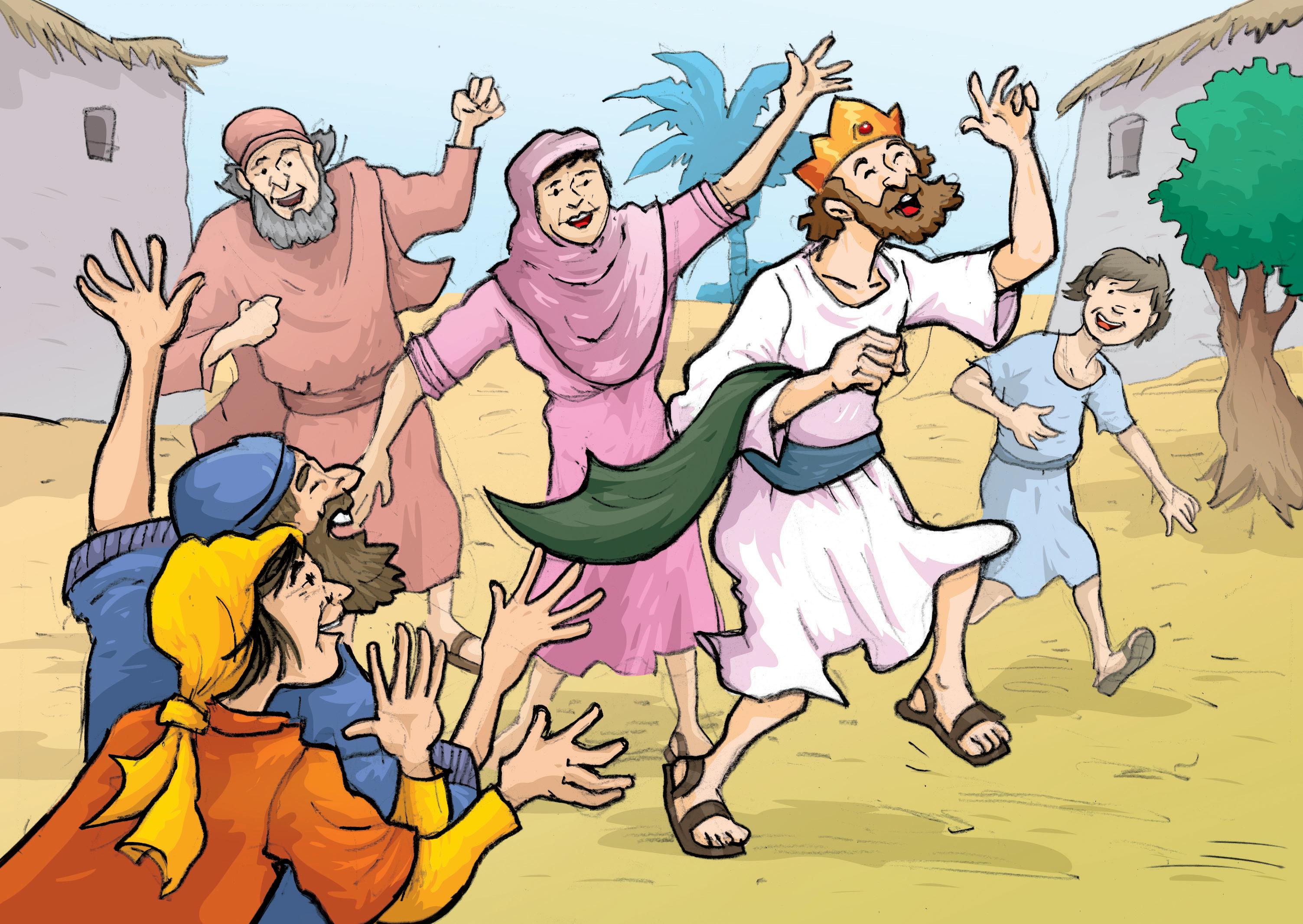 Cuando David y sus hombres llegaron al campamento amalecita, estaban haciendo una fiesta celebrando el botín que habían robado. David aprovechó que estaban desprevenidos, los atacó y rescató a todas las personas. ¡Qué alegría verse todos juntos de nuevo! Pero cuando terminó la batalla resultó que los amalecitas habían robado también a los filisteos y había muchísimas más riquezas de lo que esperaban. Y decidieron quedarse con el botín de los amalecitas para repartirlo entre todos.
