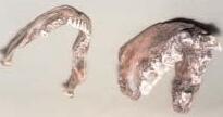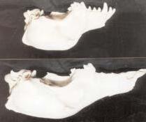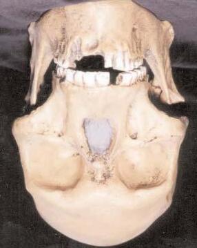 En las formas robustas, la mandíbula tiene mayor tamaño y robustez, con una rama ascendente más alta y vertical que en las formas gráciles y una sínfisis mentoniana más vertical, tendente a formar un mentón.1 El mentón es único en el hombre actual, aunque con excepciones (véase figura 2.4), y no se ha encontrado en las etnias erectus y neandertal.
