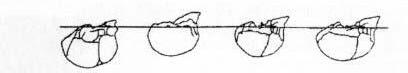 Fig. 2.9. Comparación de los cráneos infantiles y adultos correspondientes a simios, australopitecinos y humanos. Situación de los cráneos en el plano de Frankfurt. - 13-