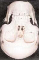 La base del cráneo en el hombre muestra el agujero occipital vertical y adentrado en el cráneo, en tanto que en los monos se sitúa en el borde occipital, se presenta oblicuo respecto del plano de la base. Los australopitecinos poseen un agujero occipital más próximo en su posición al humano, haciendo mayores sus posibilidades de bipedismo respecto de los monos.1