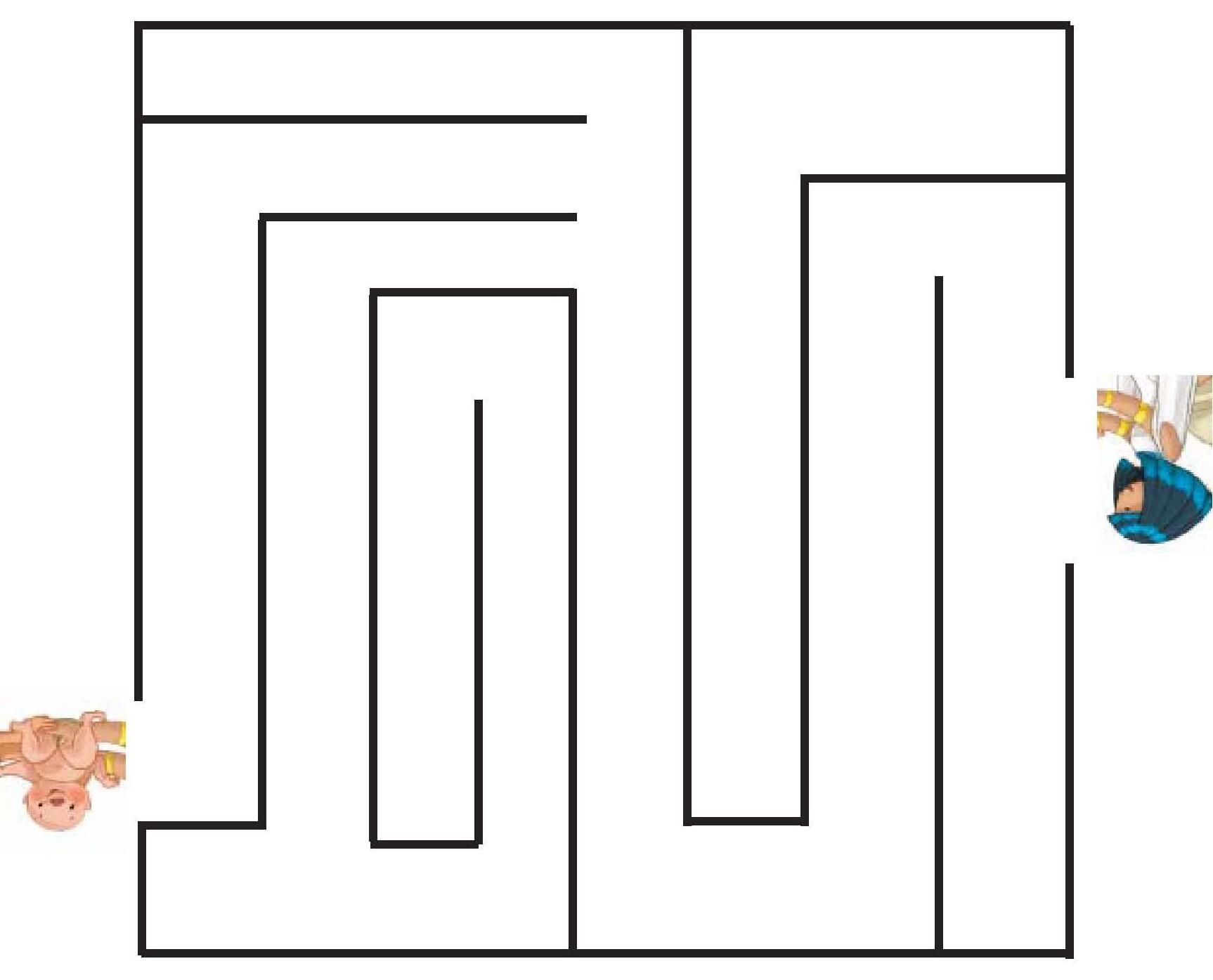 Proponemos: Cada laberinto tiene un personaje de la historia que quiere encontrar a Moisés. Se recomienda identificar el personaje y explicar su papel en el relato. (Se puede imprimir en DIN A3 y poner como póster en la clase y que los niños hagan el recorrido con el dedo, con la ayuda de sus compañeros)