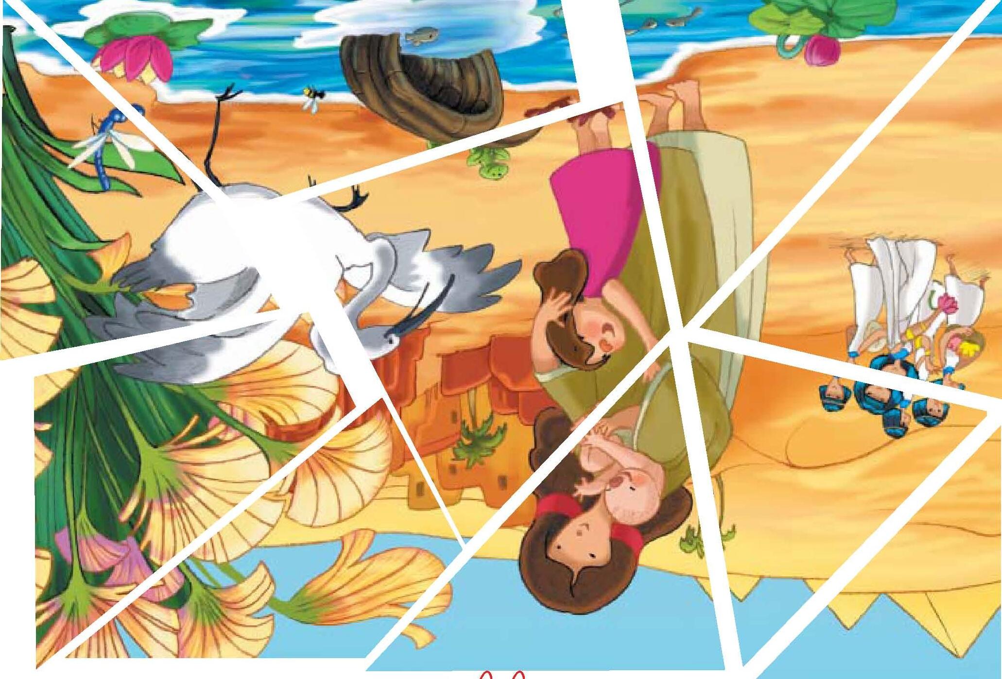 Proponemos: Tienen que ir uniéndose las partes hasta que la imagen sea idéntica al modelo. Presentamos está lámina de muestra pero se puede hacer imprimiendo cualquier otra del relato bíblico. Es importante que después haber conseguido completar el rompecabezas se le pida al/la niñ@ que explique el contenido de la imagen.