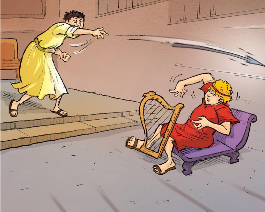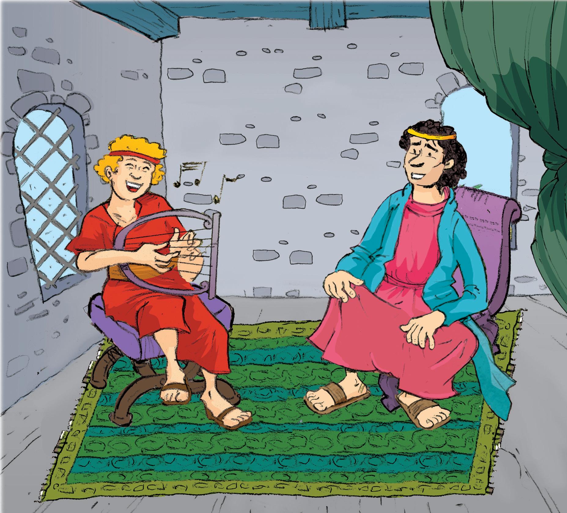¿Qué hizo el rey Saúl desde ese día en adelante? (Lee 1 Samuel 18: 9). Se dejó llevar por la duda y la desconfianza hacia David. Saúl le estaba dando tantas vueltas a la cabeza que volvió a tener otra vez los ataques del espíritu malo. Menos mal que ahora tenía a David con él para tocar el arpa y tranquilizarle. Pero los delirios del rey empeoraban en contra de David. ¿Qué ocurrió en ese momento? (Puedes leer la reacción de Saúl en 1 Samuel 18: 10, 11).