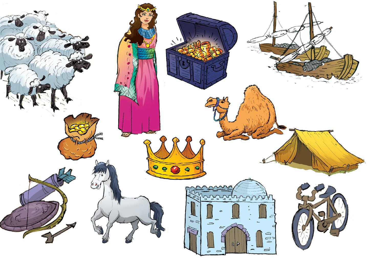Señala en este batiburrillo los objetos que traían los gabaonitas