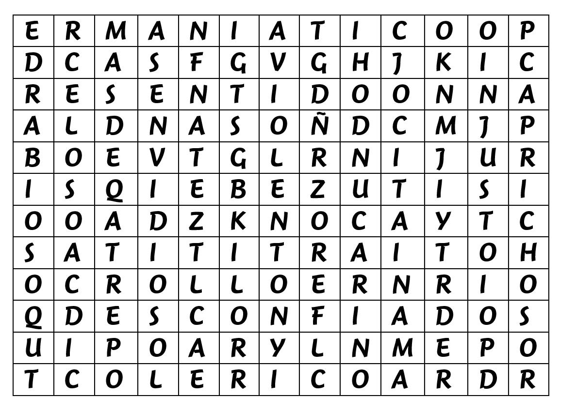 Encuentra en la sopa de letras algunas características del carácter del rey Saúl: