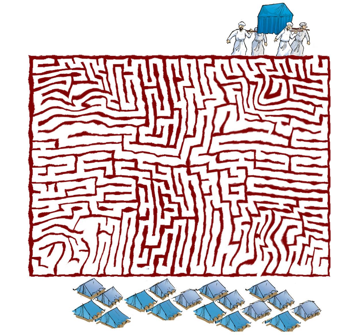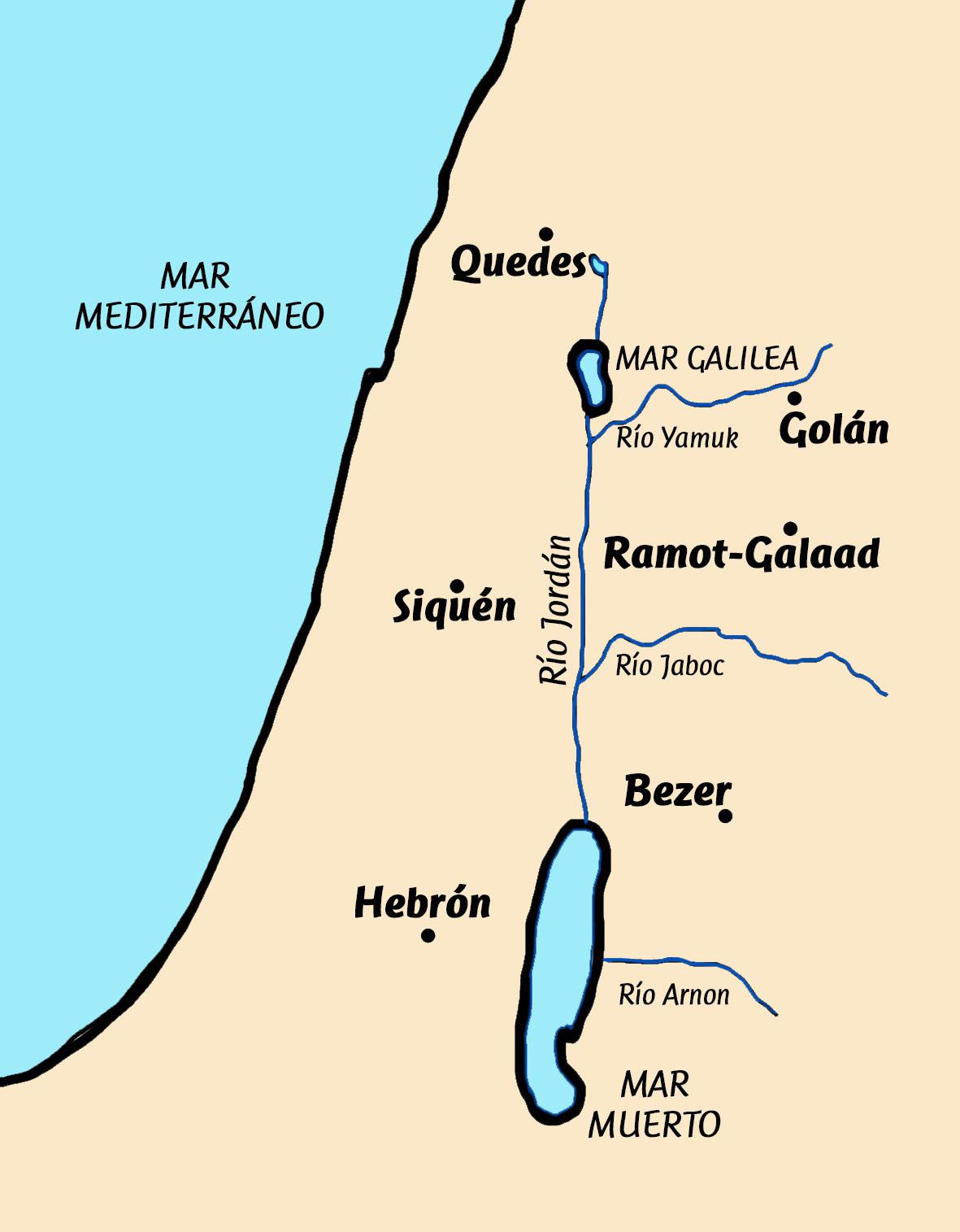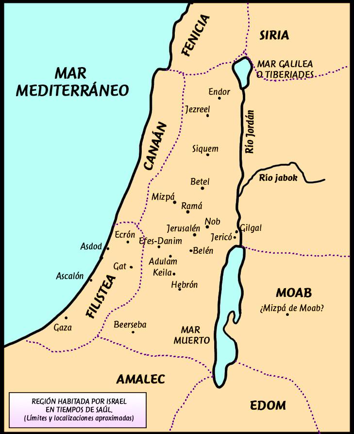 Dibuja en el mapa el trayecto que realizó David y su gente de acuerdo al texto de hoy basado en 1 Samuel 22: 1-5 (mejor si usas una versión Reina Valera). Una pista: el bosque de Haret (Heret o Jaret) está cerca de la ciudad de Keila.