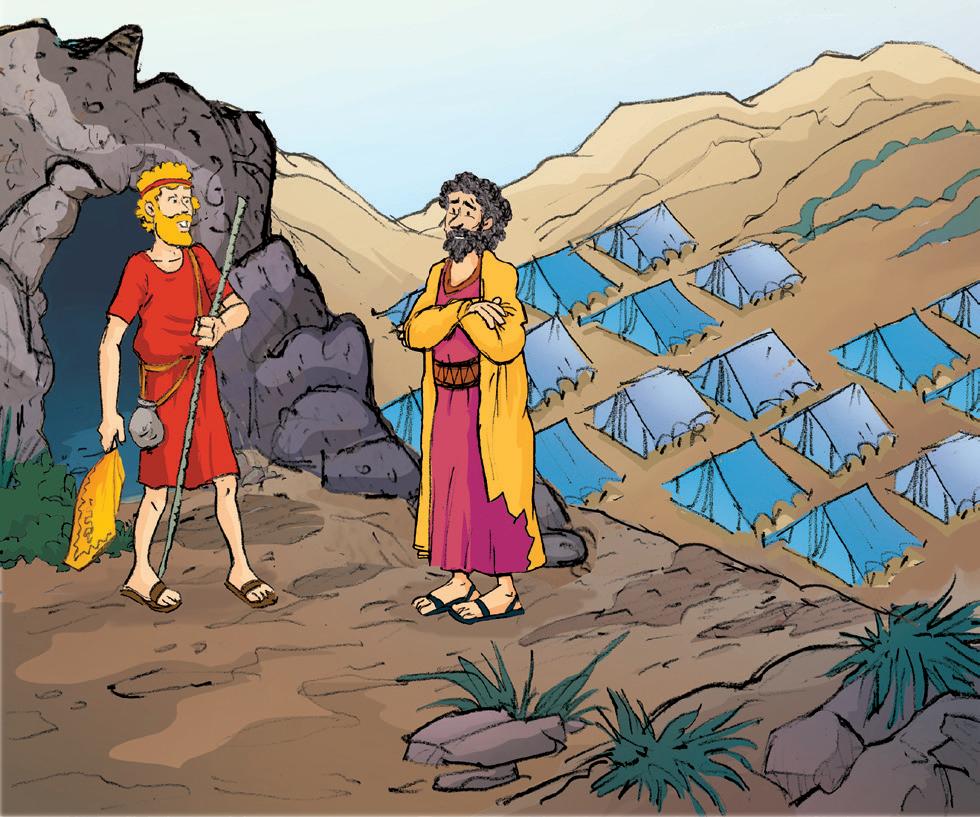 Jonatán era amigo de David y se sorprendió mucho. ¡Su padre estaba tratando de matar a su amigo a sangre fría! Jonatán fue a avisar a David. ¿Qué le aconsejó? (Léelo en 1 Samuel 19: 2, 3)