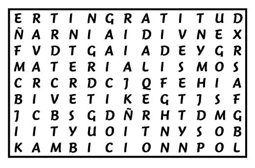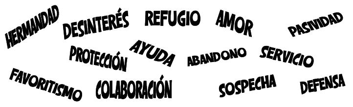 Marca todas las palabras que tienen que ver con la solidaridad, acciones que todo cristiano debería vivir.