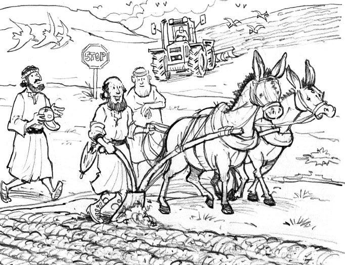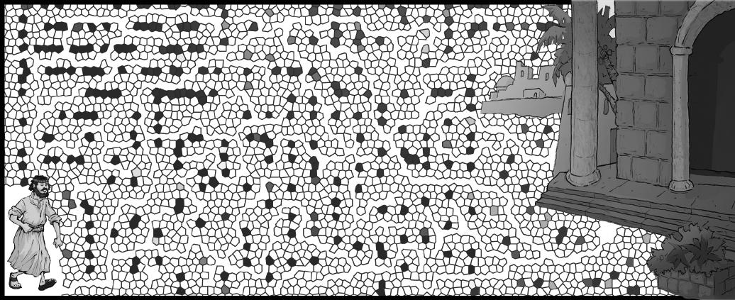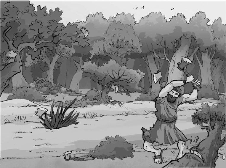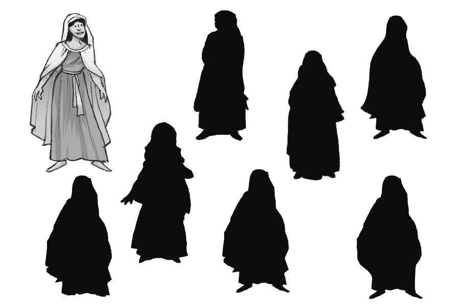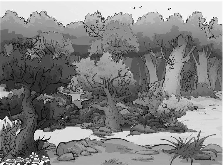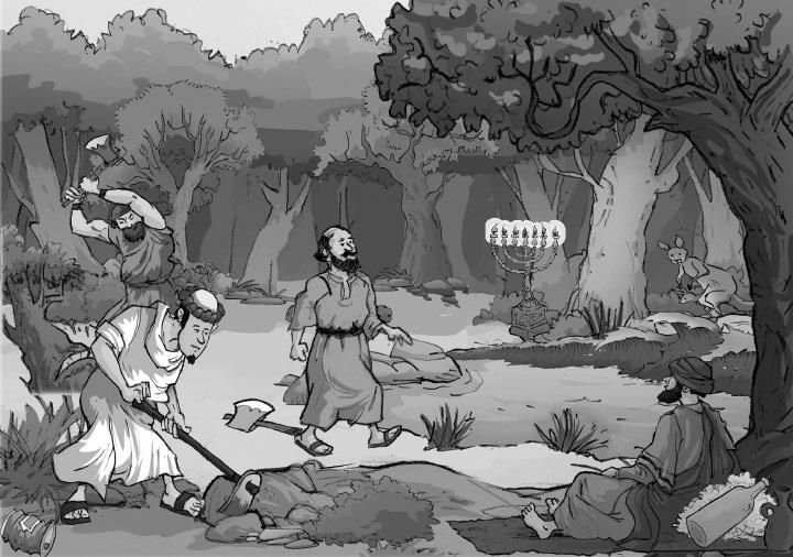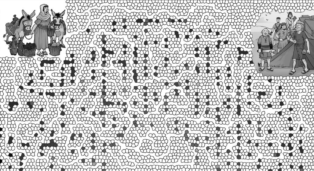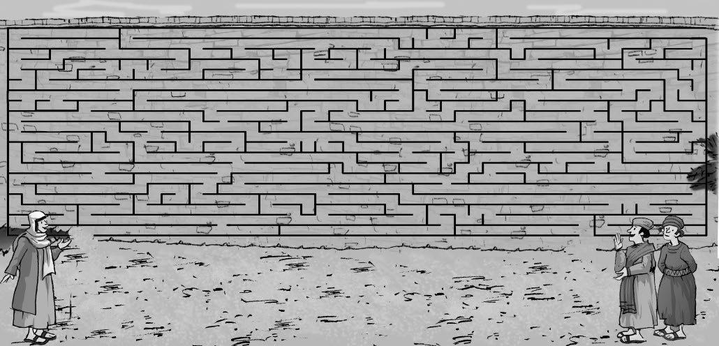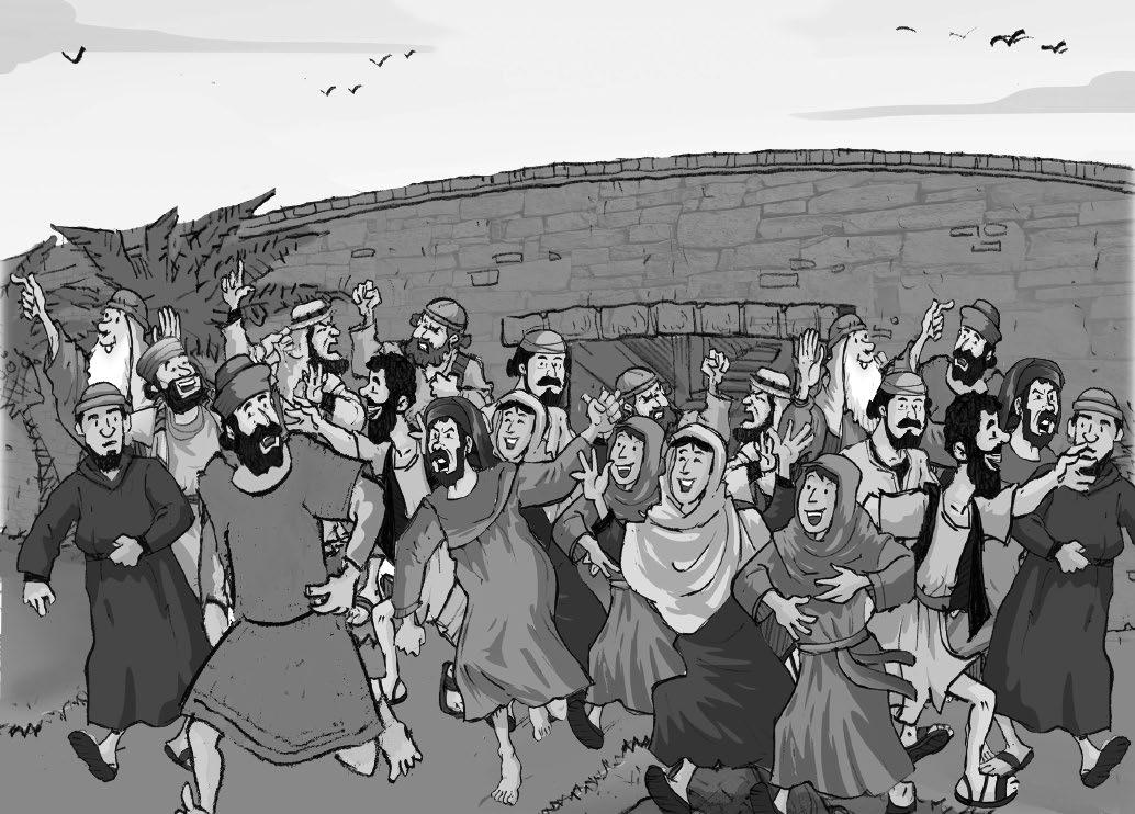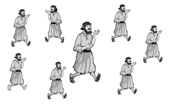 Los habitantes de Samaria salieron con tanta prisa que provocaron una avalancha. Todos los personajes del dibujo están repetidos menos uno. Encuéntralo.