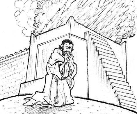 El rey Joram estaba muy triste. No sabía cómo alimentar a los ciudadanos de Samaria y los veía morir de hambre sin poder hacer nada. Un día, mientras caminaba sobre la muralla de la ciudad, oyó historias de cómo sus súbditos comenzaban a comerse los cadáveres de los muertos porque no había otra cosa. El rey se horrorizó. ¿Qué fue lo que hizo? (Era la señal de luto, dolor e impotencia. Puedes leerlo en 2 Reyes 6: 30).