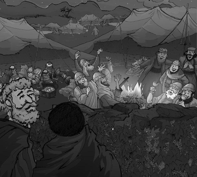 El esclavo egipcio los llevó hasta el campamento amalecita. Allí estaban, haciendo una fiesta, celebrando el botín que habían robado a David y sus hombres.