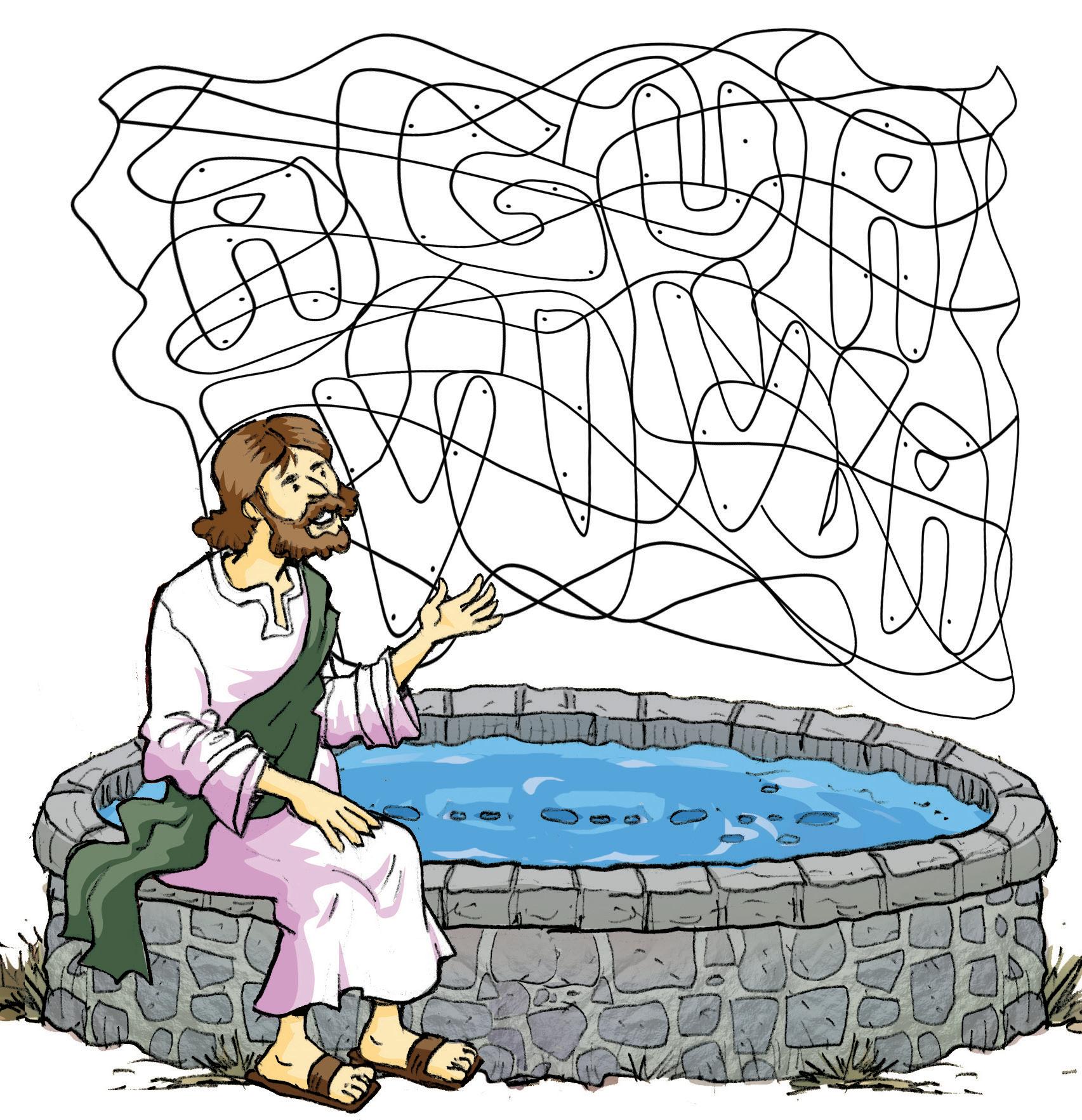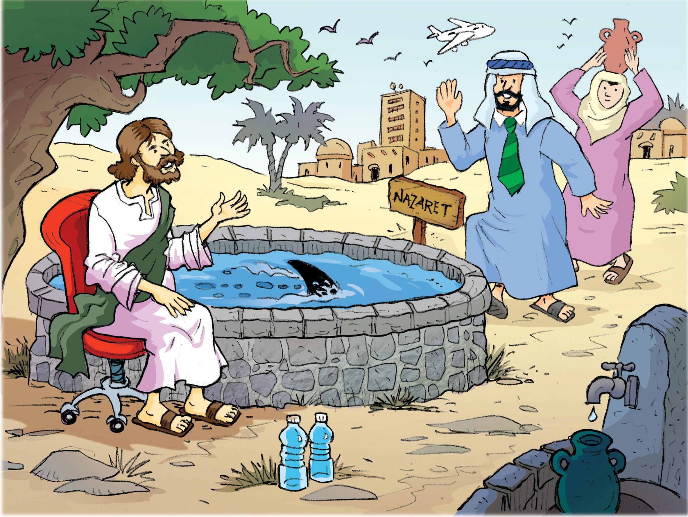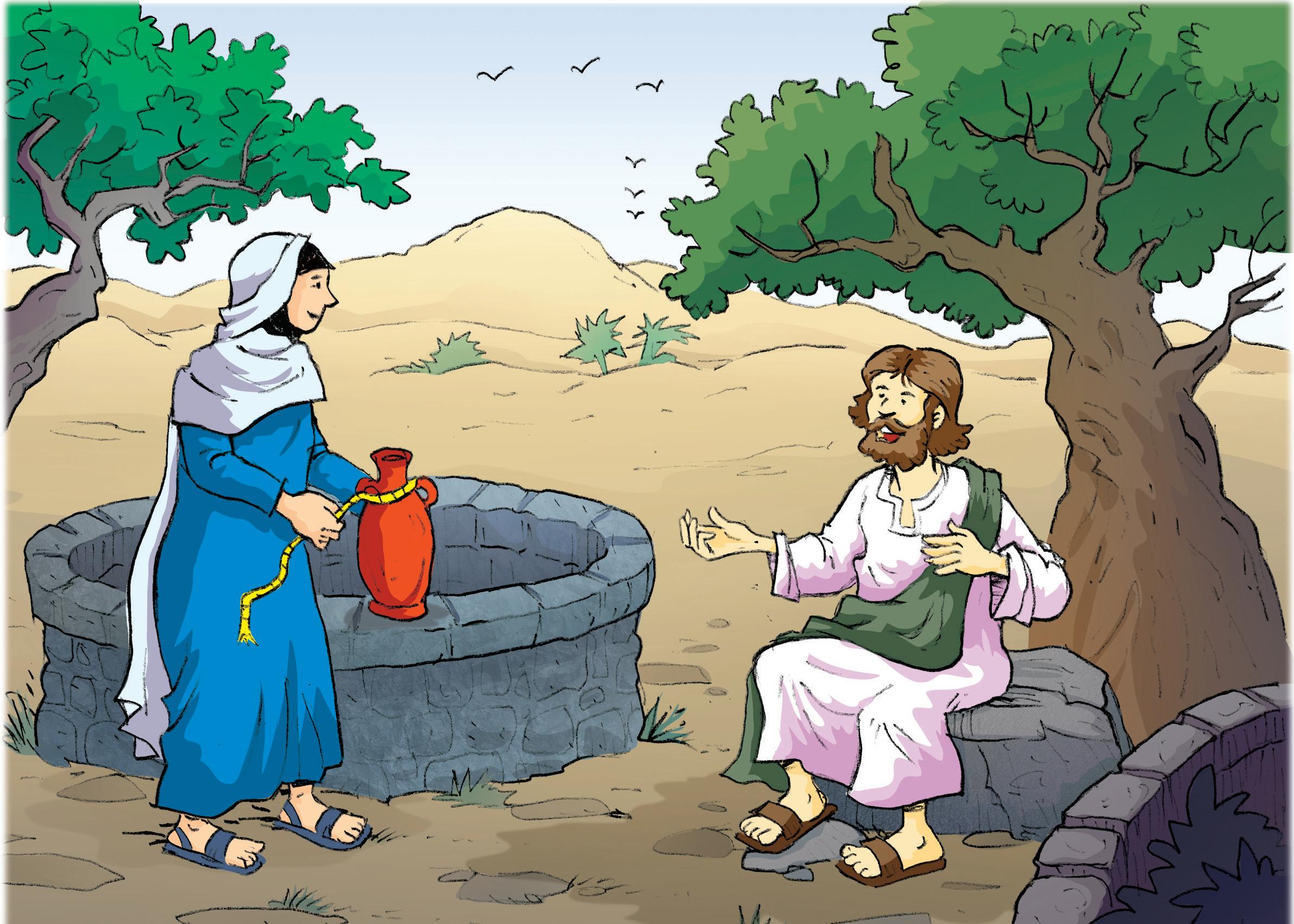 Jesús tenía calor y sed. En el pozo había agua, pero no tenía ni un cubo ni una vasija para sacarla. Así que esperó.