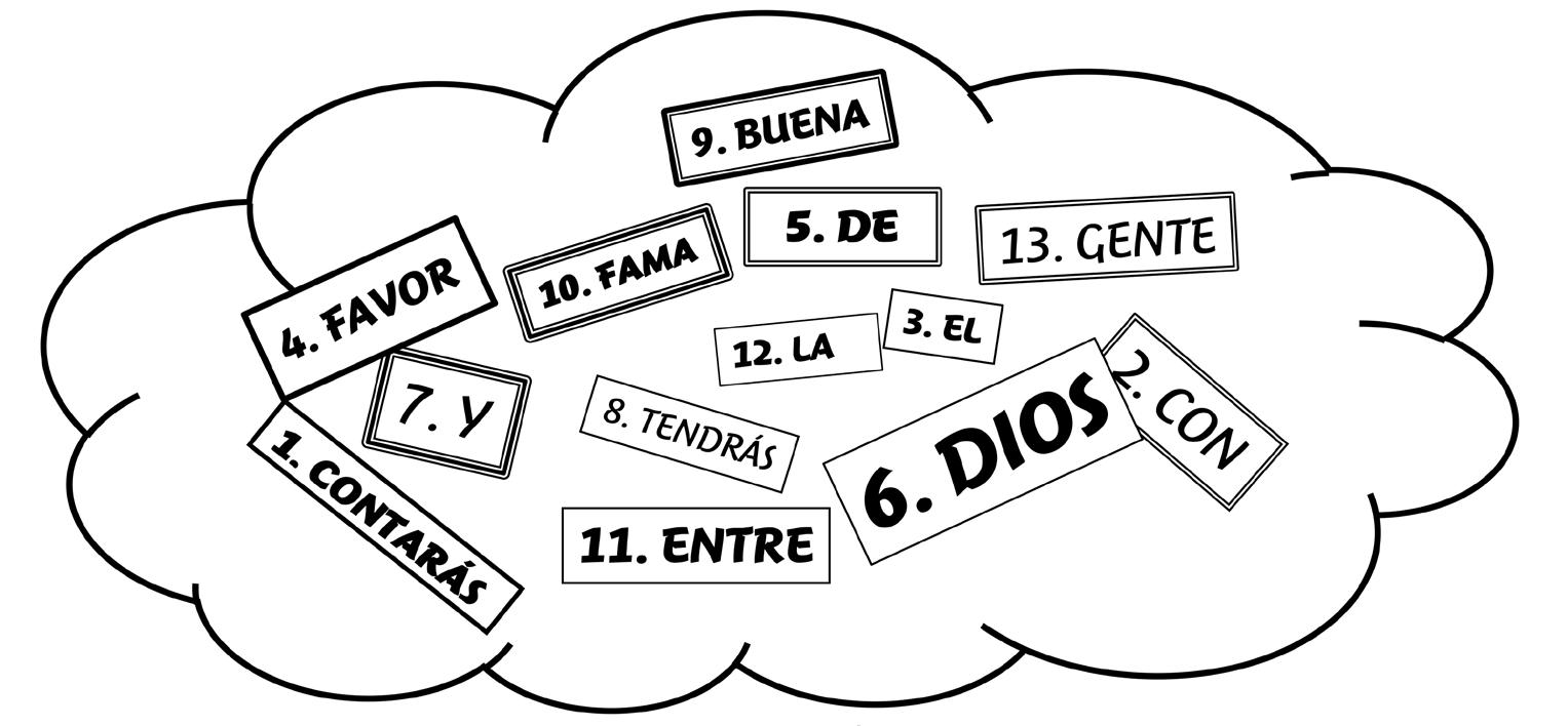 A continuación encontrarás un versículo que aparece en la lección de hoy. El problema es que se han juntado las palabras y han aparecido espacios donde no deberían estar. Pon orden a las frases y podrás leer las palabras de Jesús.