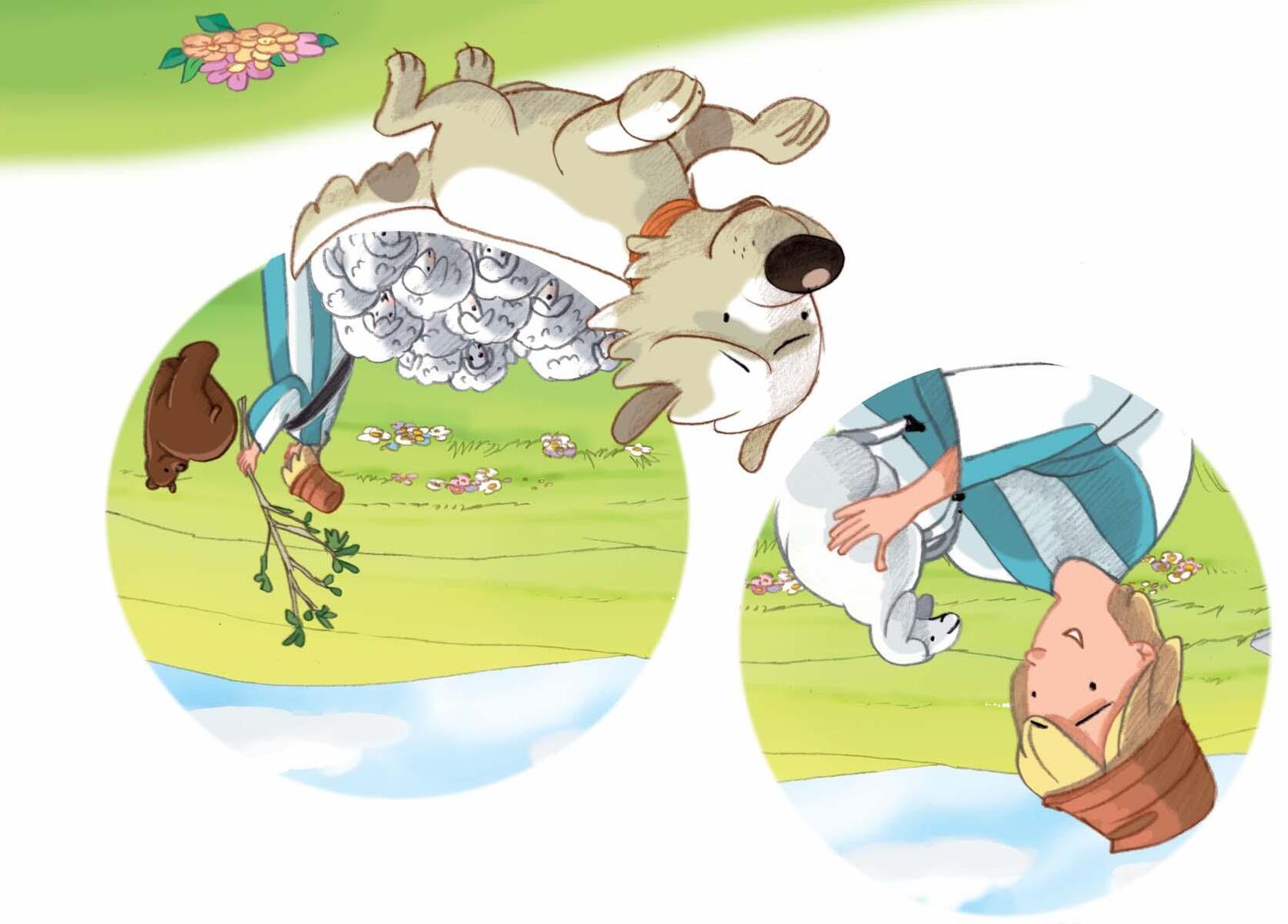 El perro conocía muy bien el lugar. Muchas veces había estado cuidando de las ovejas con David. Al perro le gustaba mucho trabajar con David. El más pequeño de los hermanos era amable con los animales y se preocupaba porque ninguna oveja tuviera hambre, sed o que se perdiera. Además era muy valiente y no le importaba enfrentarse a los leones o a los osos para defender a sus ovejas.