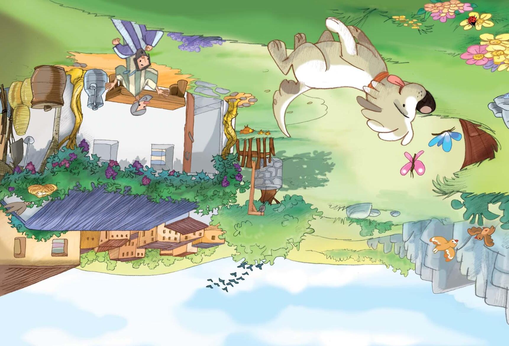 Eliab abrió la puerta. El perro salió corriendo pero se paró a los pocos metros. Entonces comenzó a hacer algo muy extraño. Corría unos pasos en dirección a la colina. Se paraba y volvía a la puerta de la casa. Ladraba dos veces y salía corriendo otra vez hacia la colina para luego volver a la casa y volver a ladrar.