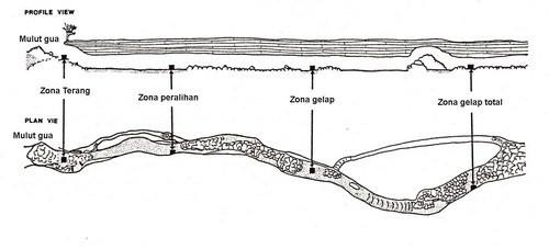Ekosistem gua termasuk dalam tipe close ecosystem atau ekosistem tertutup. Artinya, interaksi organisme di dalamnya jauh lebih terbatas dibandingkan ekosistem terbuka seperti hutan atau sungai. Di dalam gua terdapat beberapa zonasi dengan karakteristik tertentu. Zonasi gua adalah pembagian bagian dalam gua menjadi beberapa wilayah berdasarkan intensitas cahaya, suhu, kelembapan, dan pengaruh dari lingkungan luar. Zonasi ini sangat penting karena setiap zona memiliki karakteristik fisik yang berbeda, yang kemudian memengaruhi jenis organisme yang bisa hidup di sana. Berikut ini gambaran setiap zona yang ada di dalam gua.