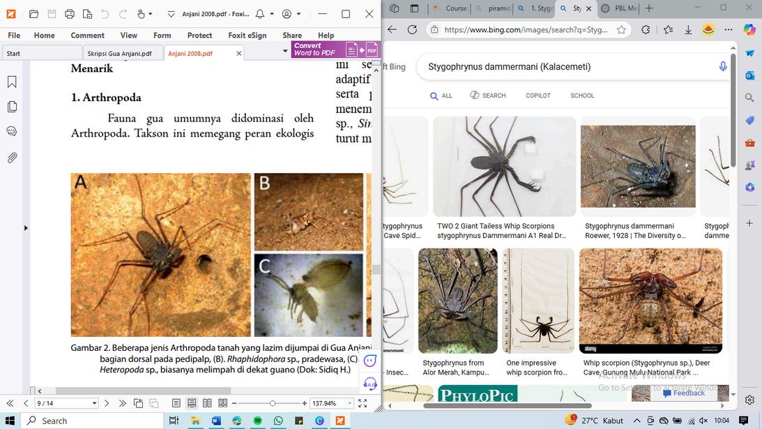 Prakarsa, T. B. P., Margani, R. B., Pamungkas, F. R., Budiatmiko, F., & Arjunanda. (2015). Biodiversitas Ekosistem Gua Anjani di Kawasan Karst Menoreh (Tinjauan khusus Arthropoda). Symbion: Symposium on Biology Education, pp 323-327.