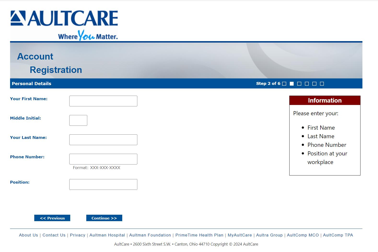 2. Enter the name of the person you know at AultCare; (e.g., Group Account Coordinator)