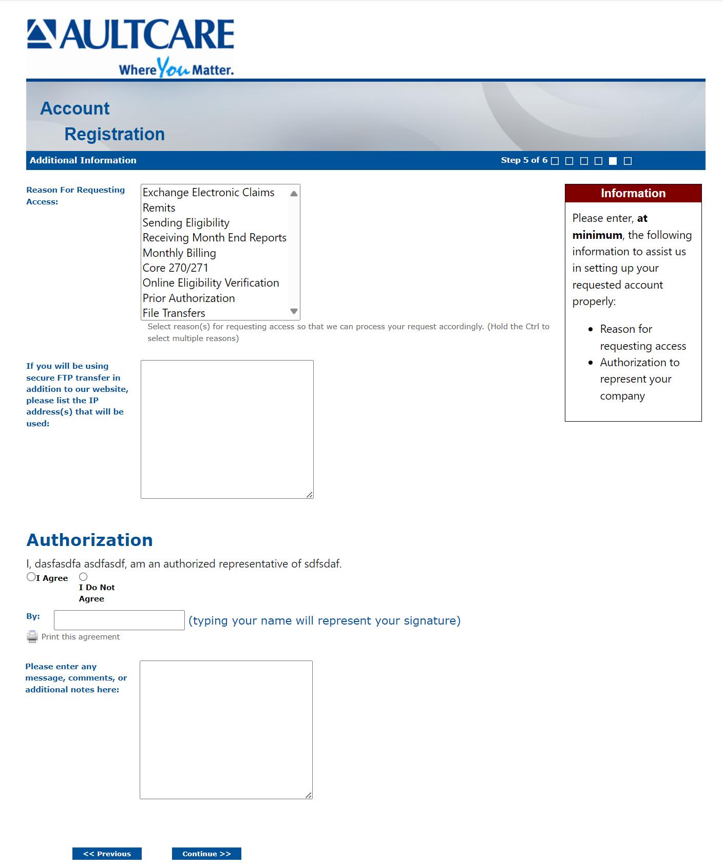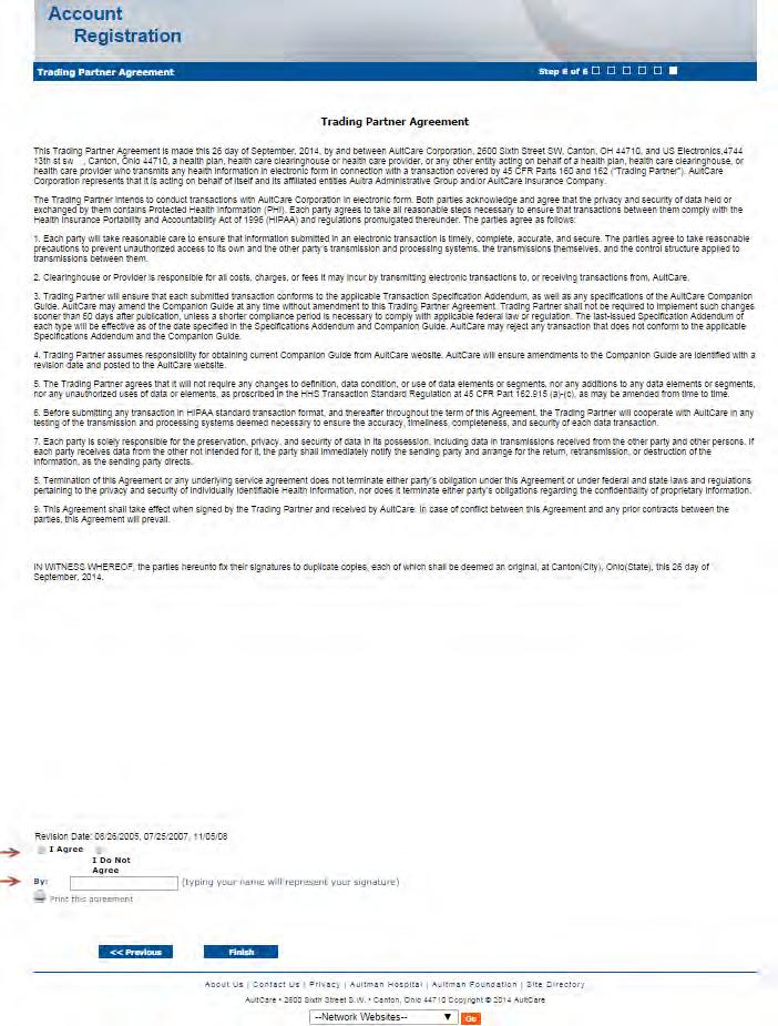 This is the final page of your account registration process. You must agree to the Trading Partner Agreement specified on this page. You can print this agreement by clicking on “Print this agreement.”