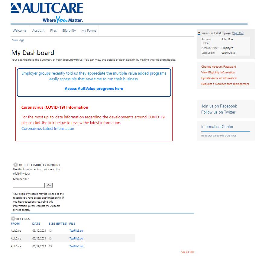 to our AultCare family. Whether you are a new client, or have been with us for many years, we are proud to assist you in managing your employer account.