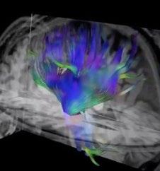 Diffusion tensor imaging (3T, 32 encoding directions, b=800 s/mm, 2mm isotropic resolution) reveals that high levels of soccer heading over two years is associated with changes in brain microstructure similar to findings seen in mild traumatic brain injury. Image from Michael Lipton, MD, PhD, of Columbia University, et al.