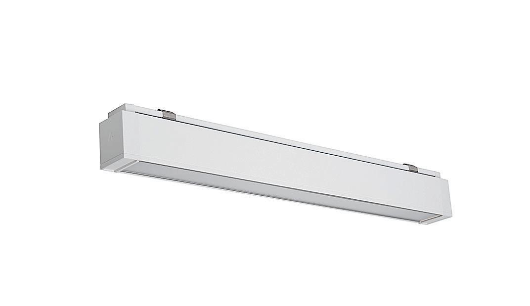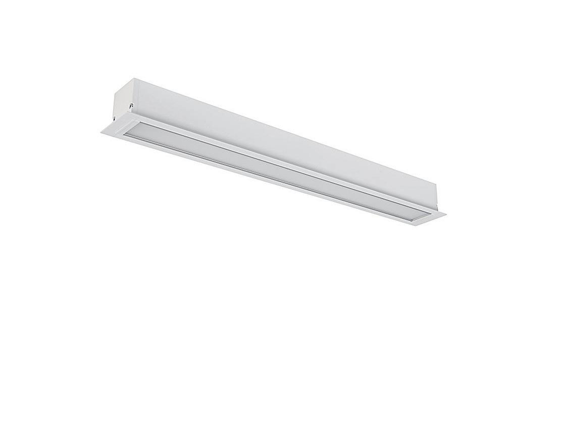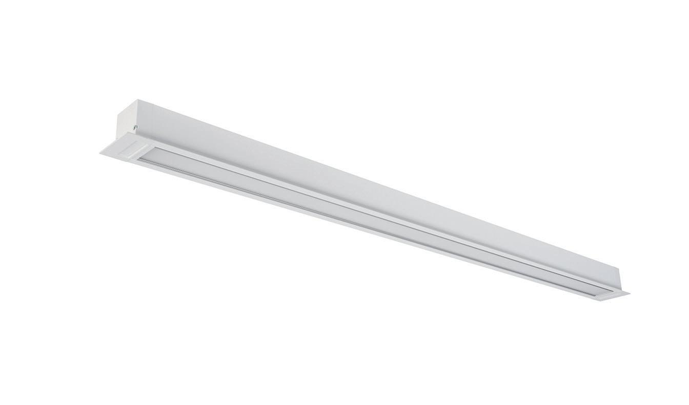 Lineare Einbauleuchte in Weiß oder Schwarz, in zwei Standardlängen erhältlich. Verfügbar mit drei Optikvarianten: Opal, Linse oder asymmetrische Linse.