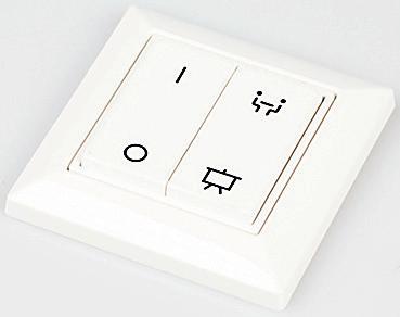 Kabelloses, batterieloses Steuerpanel mit Bluetooth® Low Energy, vier frei konfigurierbaren Tastenfunktionen –zur direkten Verwendung mit Helvar ActiveAhead und RoomSet-Lösungen.