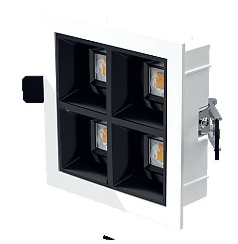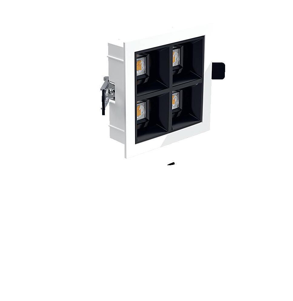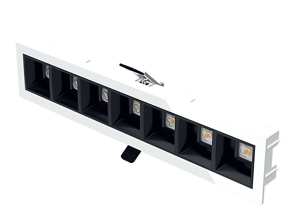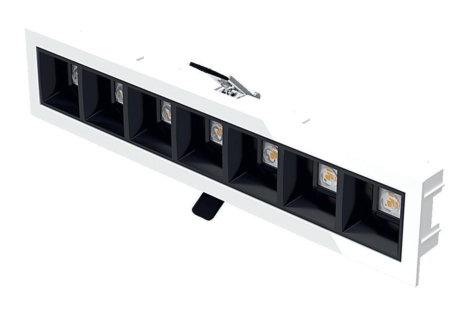 LED-Einlegeleuchte mit eleganter Optik und blendungsarmen Licht. Ausgezeichnete Farbwiedergabe. Reflektoren erhältlich in Schwarz, Grau und Weiß. Separat steuerbares Lichtmodul.