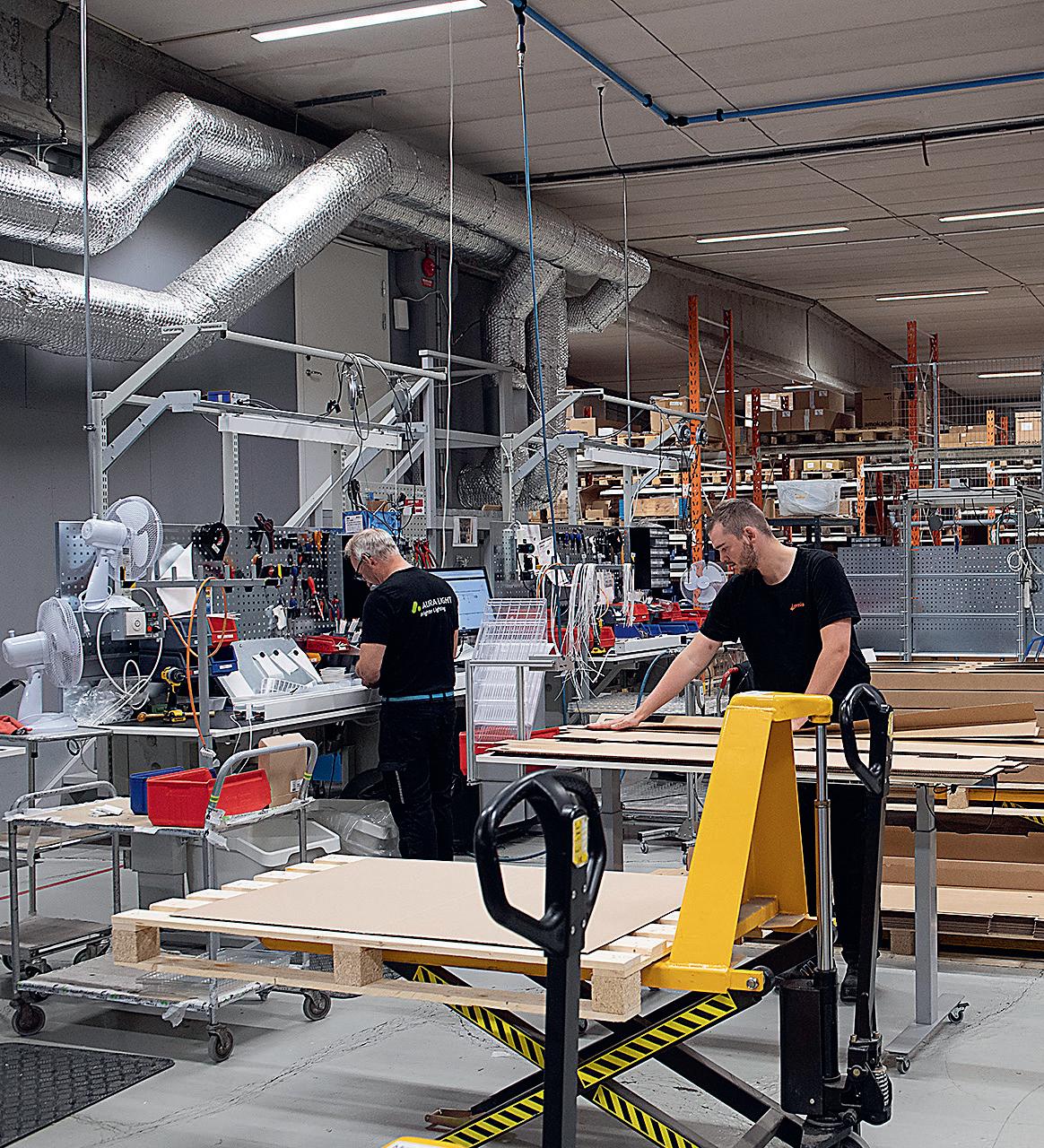 RM Snickerier hat die IP66-geprüfte Leuchte Alekza in seiner Fertigungsstätte in Vimmerby, Schweden, installiert.