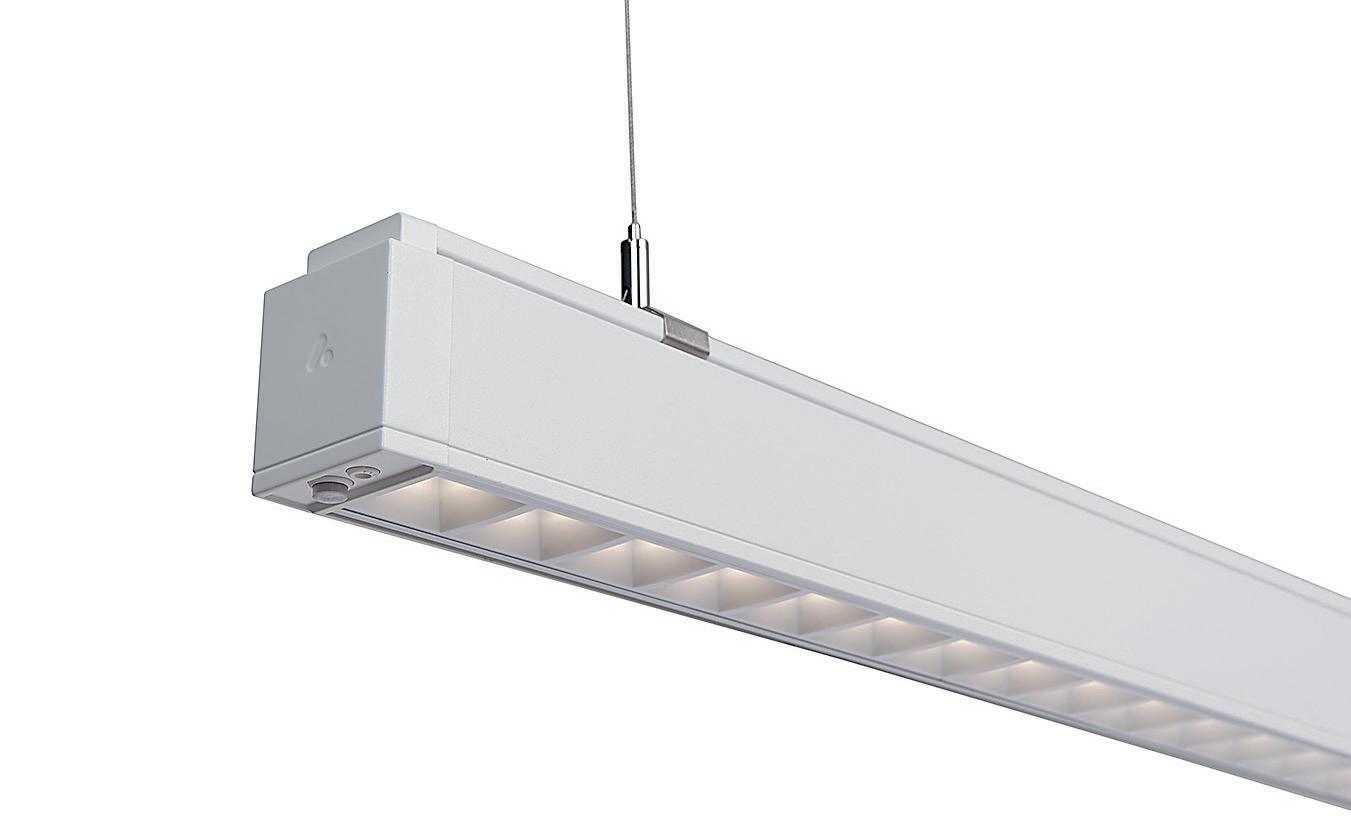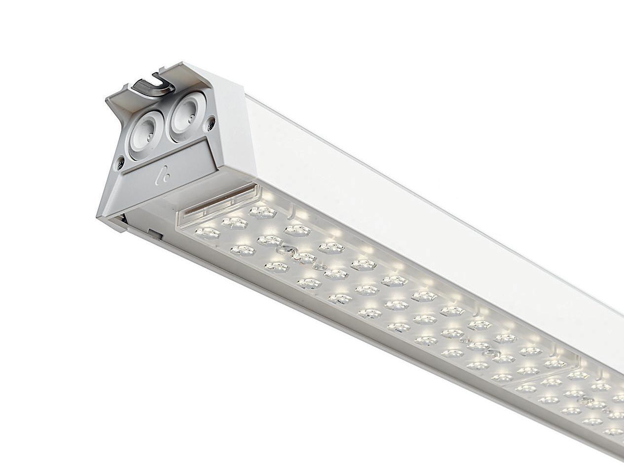 Linienprismatische Optik. Geschaltet, DALI, ActiveAhead. Sonderlängen auf Anfrage möglich.