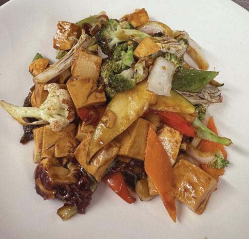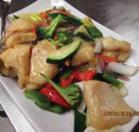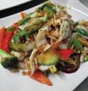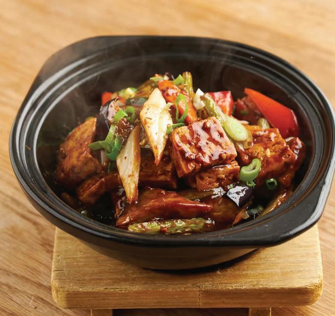 Fried tofu, eggplant and vegetables in chili-black bean sauce