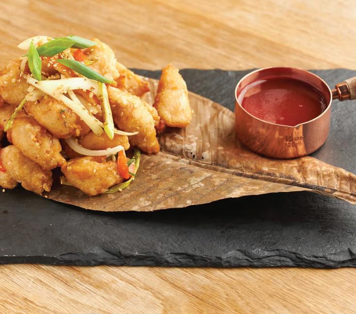 Friteerattua kanaa ja hapanimeläkastiketta