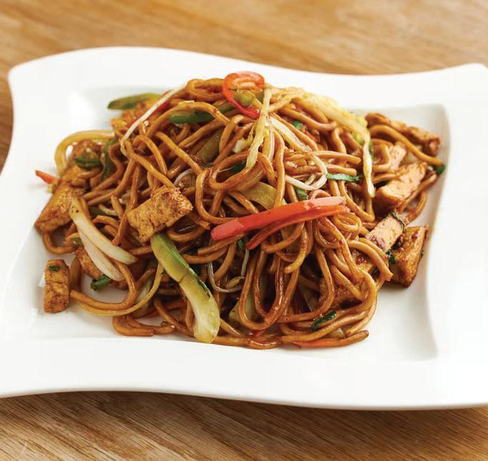 Fried noodles, fresh vegetables and egg with chicken / beef / tofu