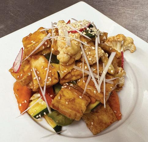 Fried tofu and vegetables in sweet and sour chili sauce
