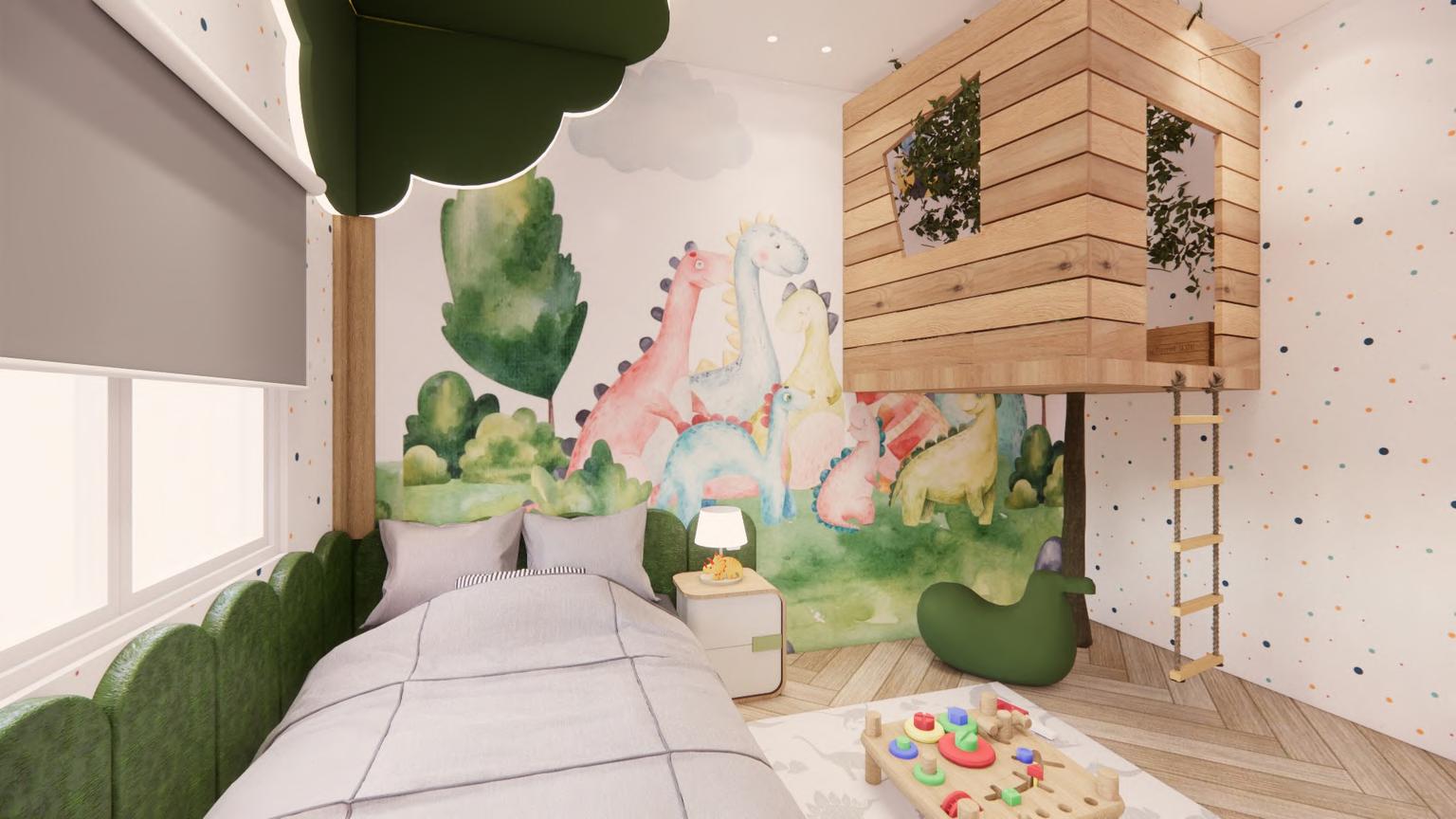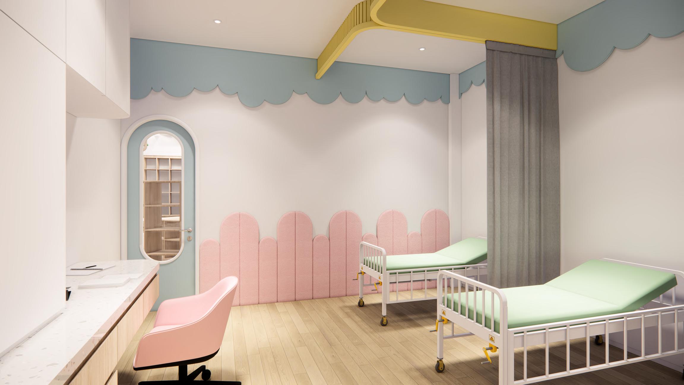 This design incorporates a concept inspired by the dynamic characteristics of young children, where certain areas in the design are specifically tailored to support their learning through play activities. Additionally, safety aspects are given top priority in the selection of shapes and materials, such as the use of nonsharp or pointed furniture shapes and materials that are slip-resistant and easy to clean.
