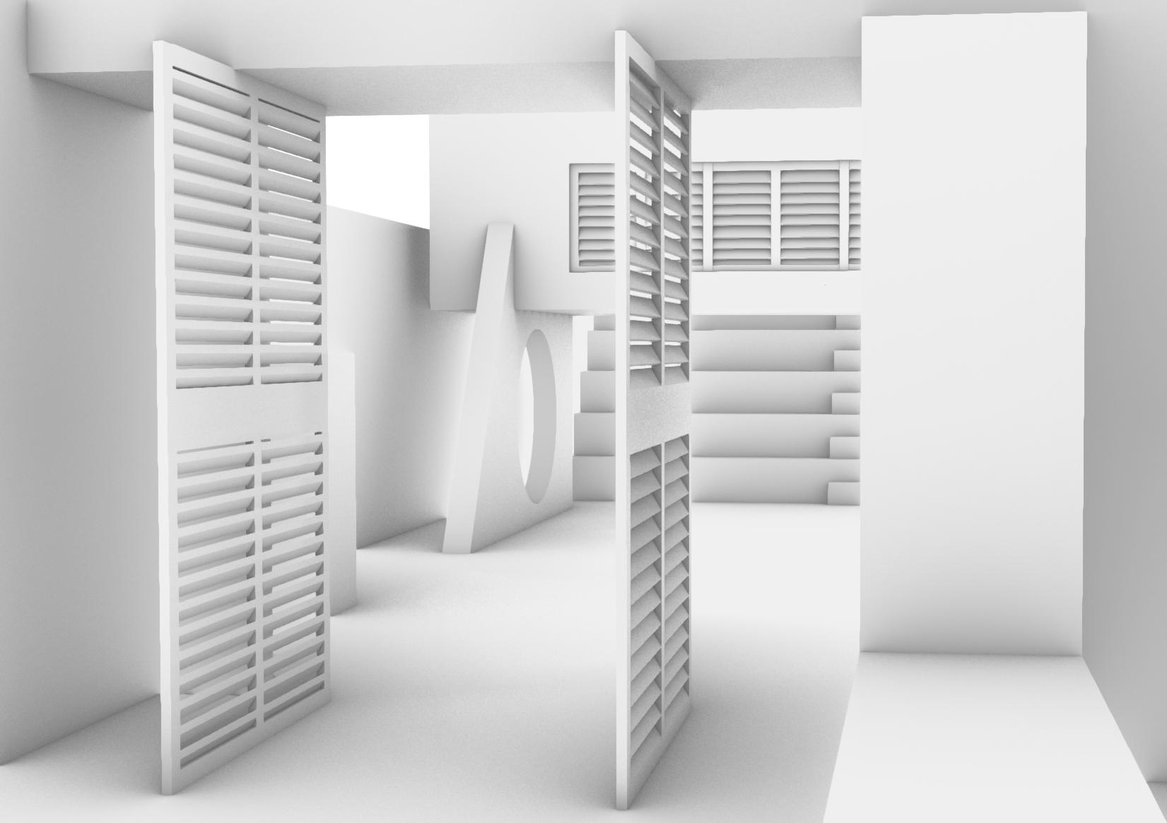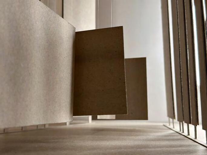 the pavilion model was constructed at a scale of 1:20 using grey cardboard. interior photographs were taken and subsequently edited with photoshop to enhance the visual presentation.
