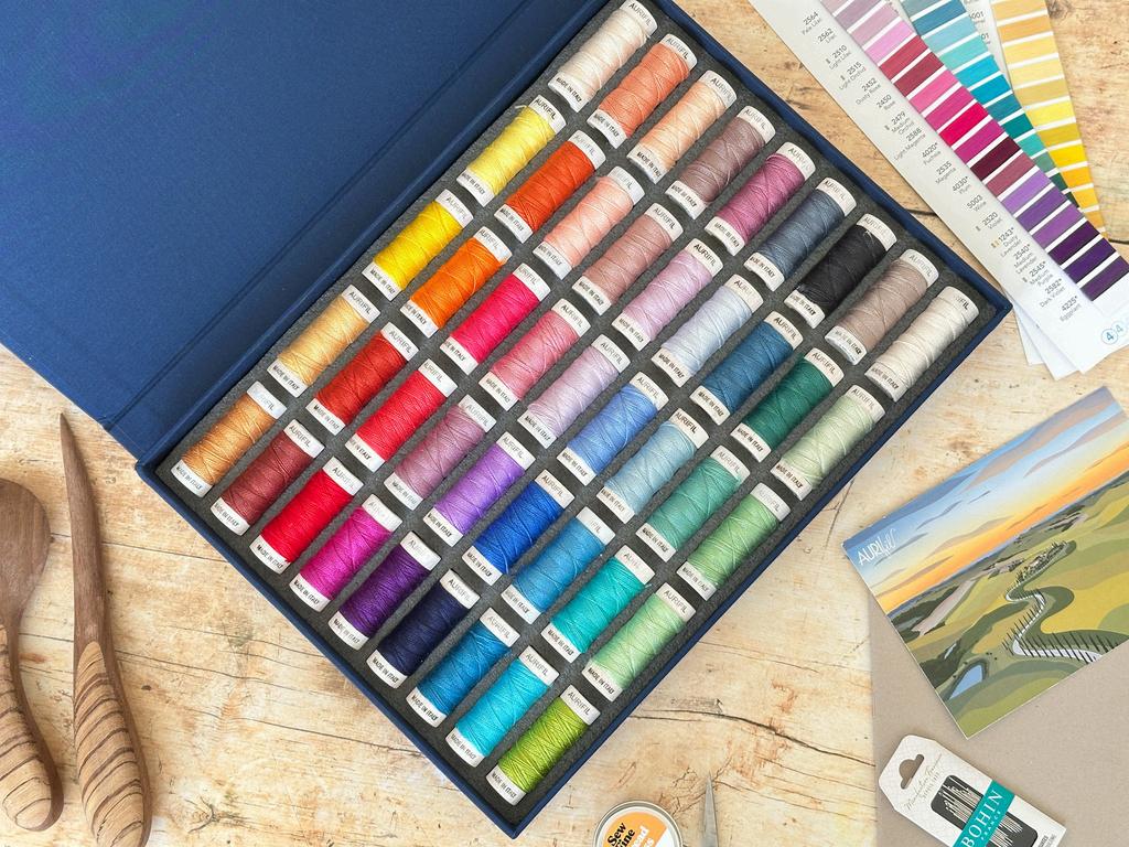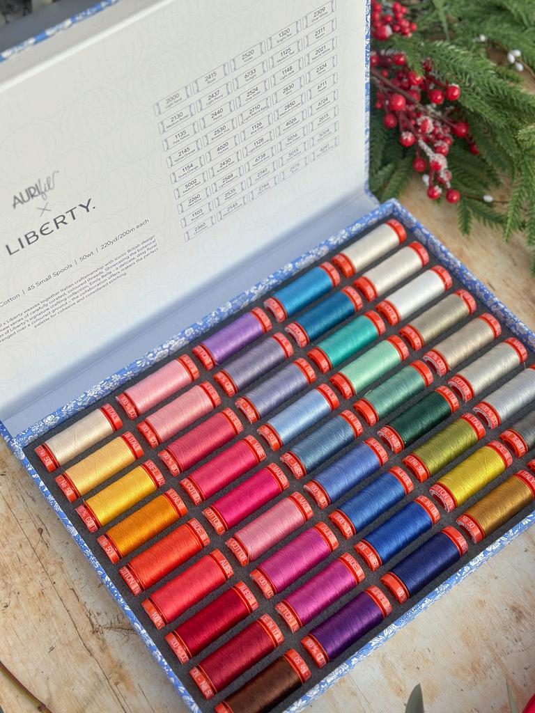 Wrapped in Liberty fabric and filled with 45 perfectly curated 50wt spools, it’s a luxurious keepsake that elevates every stitch.