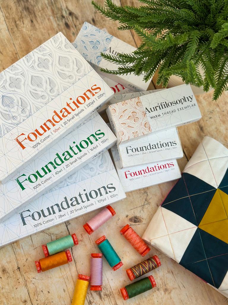 Foundations and Aurifilosophy sets offer a brilliant spectrum of Aurifil favorites multiple weights, essential hues, and endless creative potential in every spool.