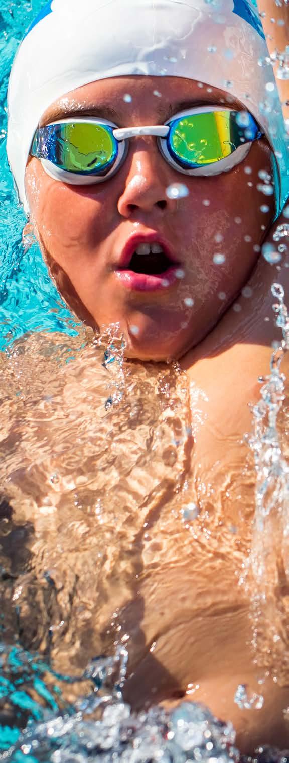 Refines technique across all swim strokes, emphasis on stamina building and streamlining for efficiency. Introduces legal transitions between lengths