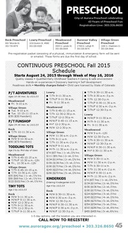City of Aurora Preschool celebrating 43 Years of Preschool Fun Registration Line: 303.326.8650