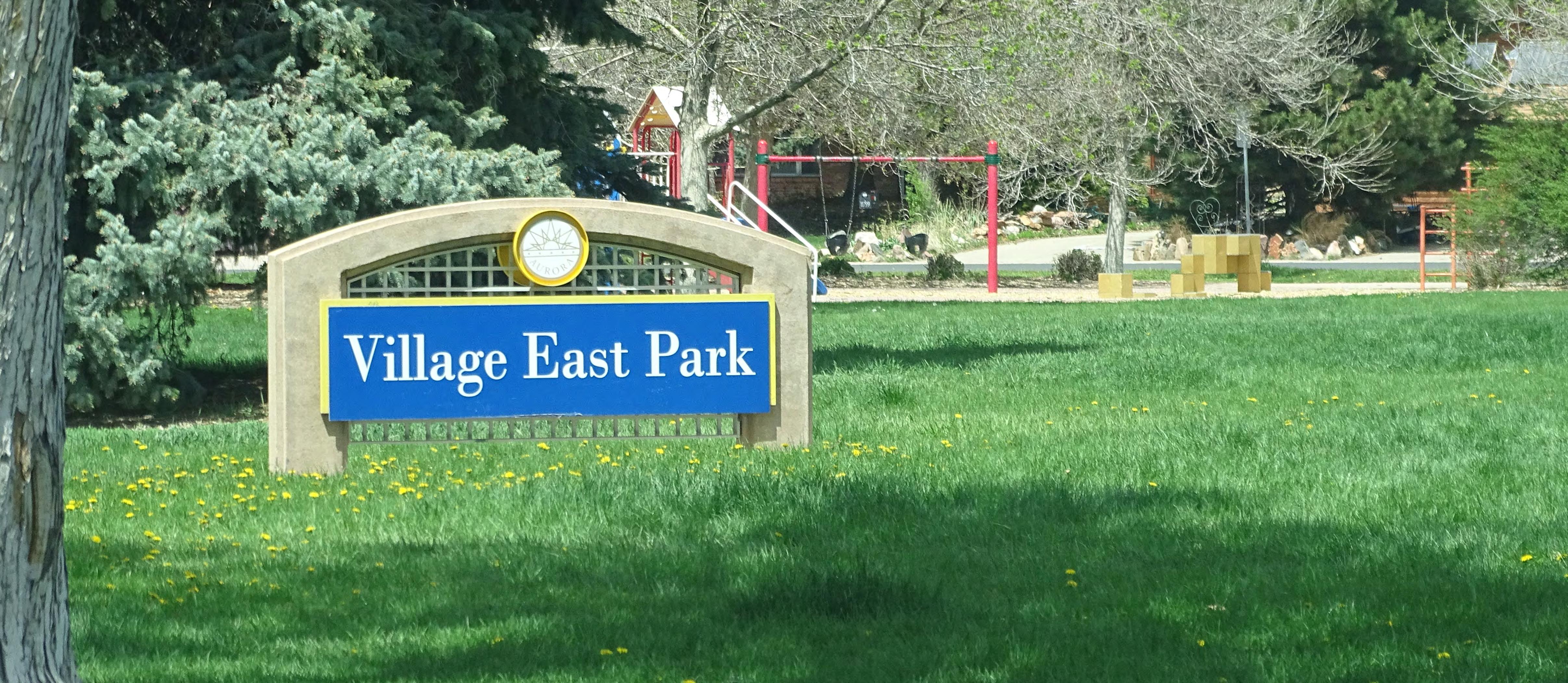 Village East Park, located at 1400 South Moline Street, is a 5.9-acre park that provides access to the Westerly Creek Trail. The city originally purchased the land in 1969. The park features a baseball/ softball diamond, a football field and a playground.